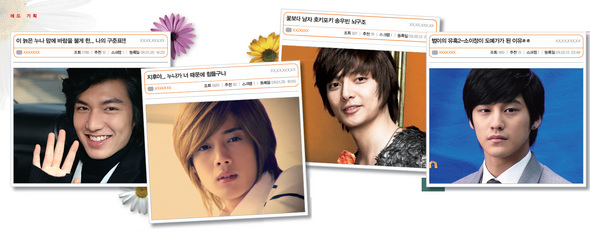 2월18일 여성포털 사이트 마이클럽(miclub.com)에 아이디 ‘ⓧ클쓰짱’이 올린 윤지후 찬가의 일부다. <태왕사신기>에서 배용준의 아역으로 나왔던 유승호군에 대한 찬가 이후로 꽃미남 동생을 향한 누나의 ‘팬심’은 4구체 찬가로 절정에 달한다. 김현중이 윤지후를 연기하는 한국방송 월·화 드라마 <꽃보다 남자>는 이렇게 절정의 인기를 누리고 있다. 찬가가 나오고 하루이틀 지나지 않아 ‘답가’도 나왔다. “어익후나 빵터졌네/ 또읽어도 내맘일세/ 전국민이 시누라네/ 독한시누 여기있네… 내소원은 환생하여/ 오빠라고 부르는거.” 마이클럽 아이디 ‘기림’이 쓴 ‘짧은 답가’다. 이렇게 ‘꽃남’은 여심을 흔들고 있다. 이민호가 연기하는 구준표에 대한 팬심도 둘째가라면 서럽다. 가히 ‘구준표 신드롬’이라 할 만한 열풍을 일으키고 있다. 마이클럽 ‘꽃보다 남자 F4’ 게시판에 올라온 “전 민호 땜에 이상형이 바뀌었어요”라는 ‘외침’은 한반도를 넘어 해외로 퍼진다. “여긴 뉴욕입니다. 기대에 차 맨해튼을 헤매고 다녀야 할 제가 <꽃보다 남자> 때문에, 아니 정확히 말하면 준표 울 민호 때문에 방구석에 처박혀… 기사 검색 및 드라마 다운로드하고 있습니다… <아내의 유혹>에 더 공감할 나이에 <꽃보다 남자>라니.” 여기에 모녀가 나란히 앉아서 꽃남을 보면서 울고 웃는 이야기도 더해진다. 마이클럽뿐 아니라 디시인사이드 ‘꽃보다 남자’ 갤러리 등에도 준표폐인, 꽃남폐인은 넘쳐난다. F4 가운데 나머지 두 명인 소이정(김범)은 금잔디(구혜선)의 친구인 추가을(김소은)과 러브라인을 형성하며 인기몰이를 하고 있고, 송우빈(김준)은 마카오에서 금잔디를 위해 날린 주먹 한 방으로 ‘프린스 송’이란 별명을 얻으며 떴다. 여기에 팬들은 원작인 만화를 근거로, 촬영 목격담을 바탕으로 앞으로 전개가 어떻게 될지, 결말은 어떻게 날지를 예측하고 상상하며 설렌다.